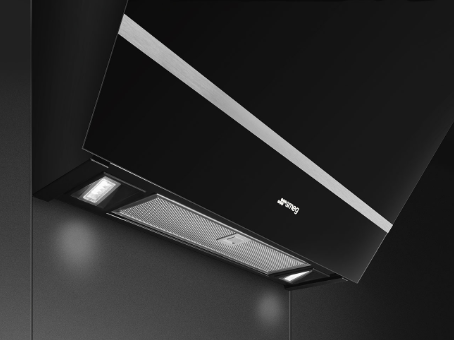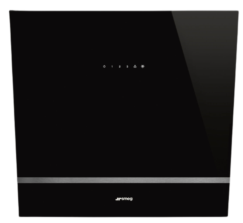 Væghængt emhætte fra Smeg med tre effektniveauer og stilfuld glasoverflade. Læs hele beskrivelsen